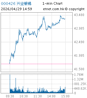 | 000426 | 兴业银锡 | 43.340 | +1.650 | +3.958% | 21.42亿 | 45.1552 | 深股通 | |