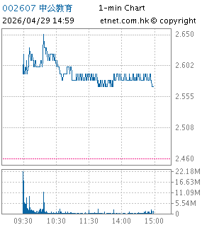 | 002607 | 中公教育 | 2.570 | +0.110 | +4.472% | 5.70亿 | 85.6667 | 深股通 | |