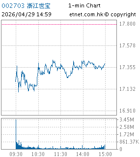 | 002703 | 浙江世宝 | 17.390 | -0.410 | -2.303% | 6.75亿 | 79.2616 | 深股通 | |