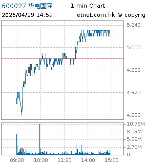 | 600027 | 华电国际 | 5.020 | +0.040 | +0.803% | 8.23亿 | 10.2449 | 沪股通 | |