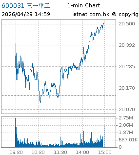 | 600031 | 三一重工 | 20.500 | +0.360 | +1.787% | 20.15亿 | 20.846 | 沪股通 | |